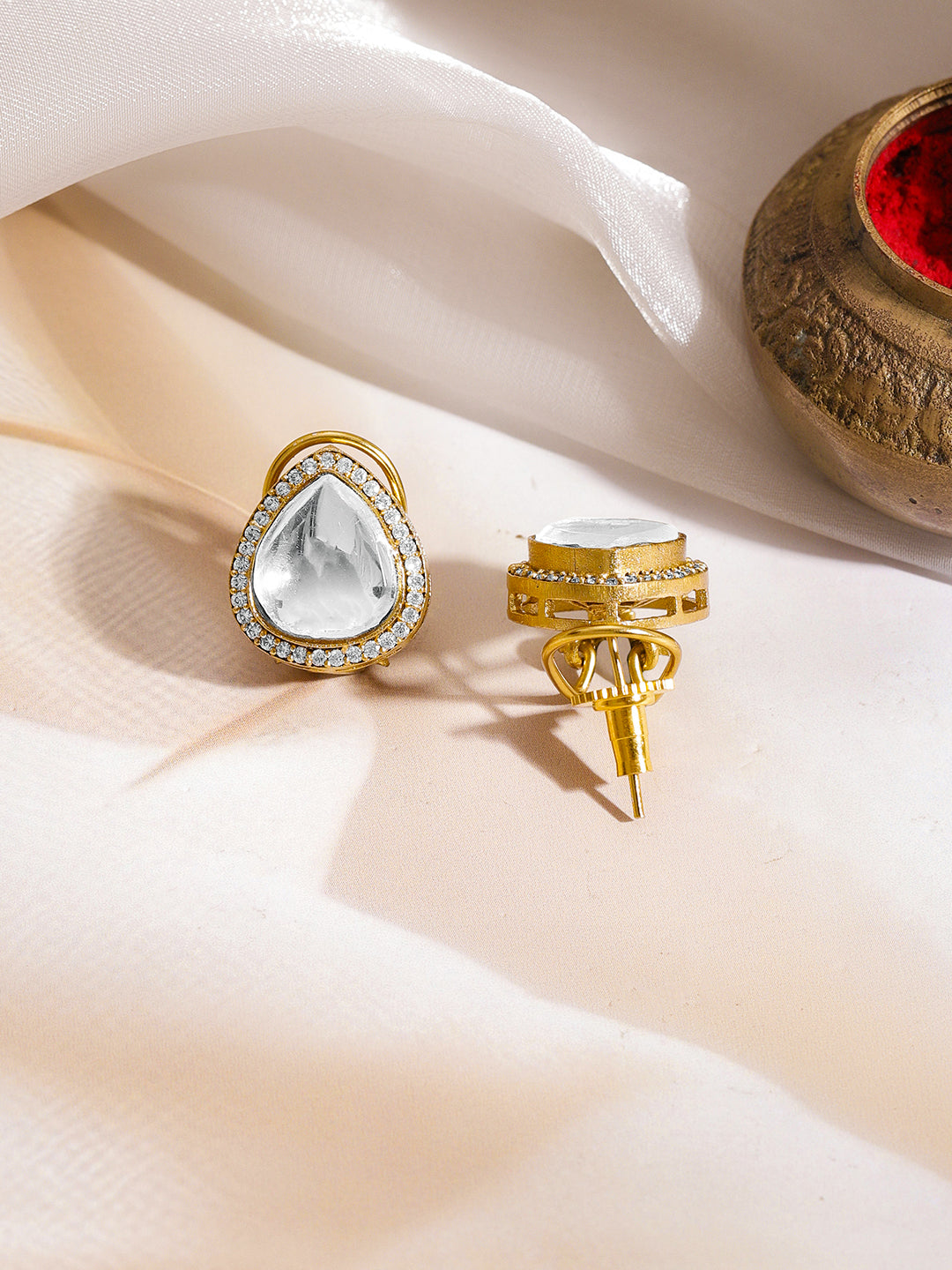 If your style is clean and classy, this fits right in. The teardrop kundan detailing adds just enough sparkle to make your look polished and put-together. Styling Tip: Perfect for intimate weddings or festive dinners.