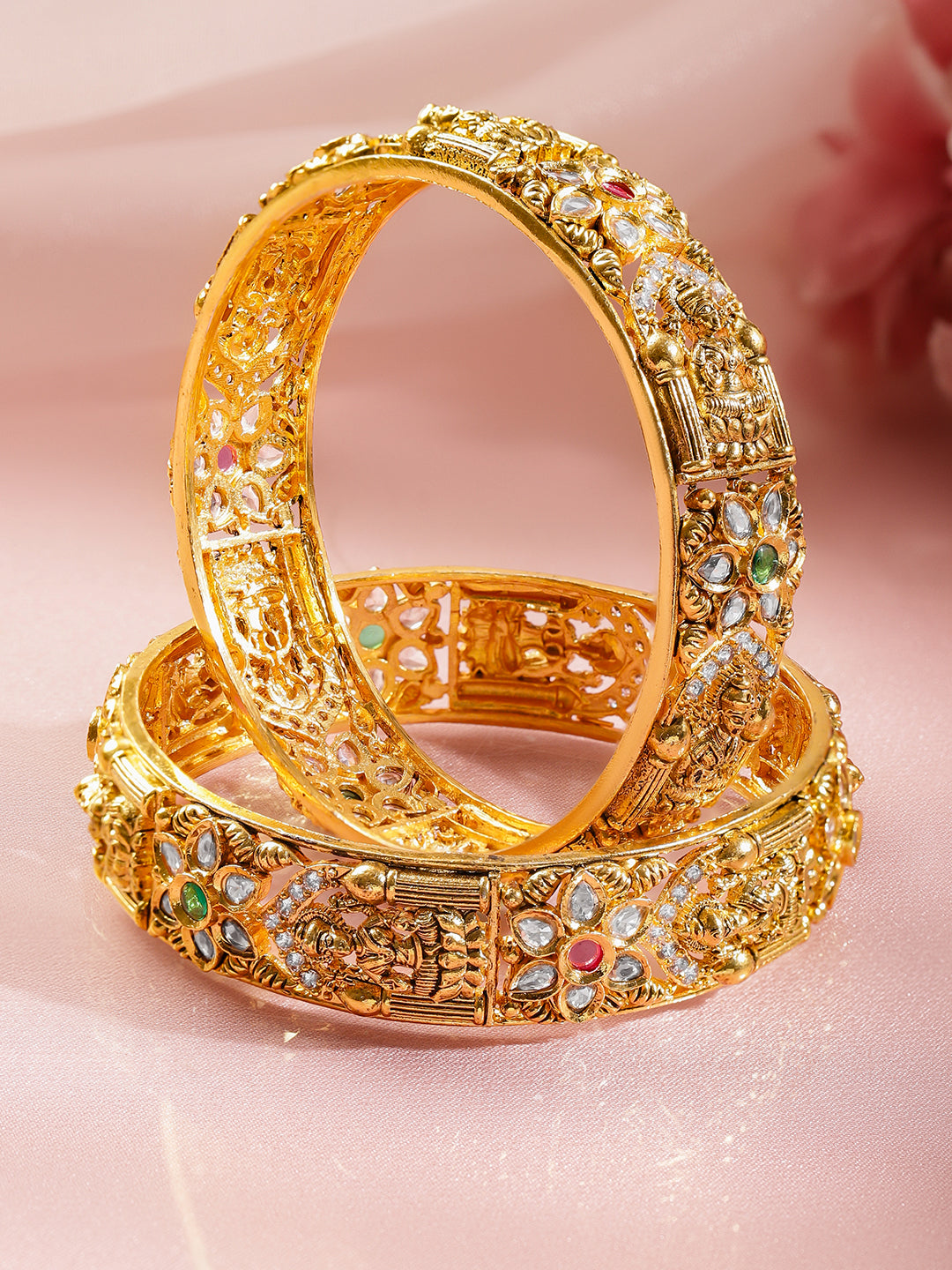 Share on WhatsappRubans Set of 2 18K Gold Plated Brass CZ Ruby Emerald Temple Bangles
