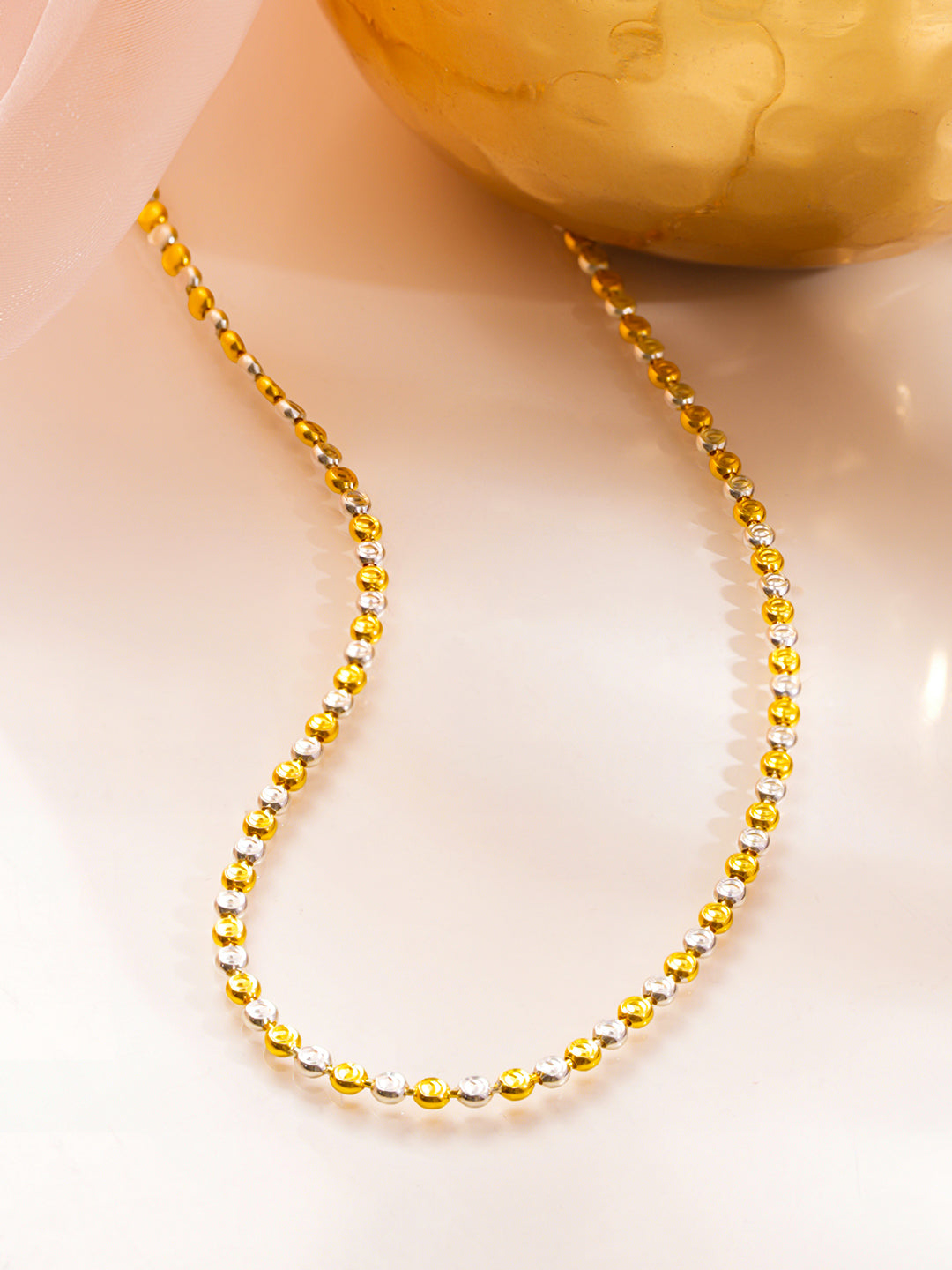 A radiant 925 Silver dual-tone beaded necklace that creates a rich glow and refined elegance. Styling Tip: Festive styling