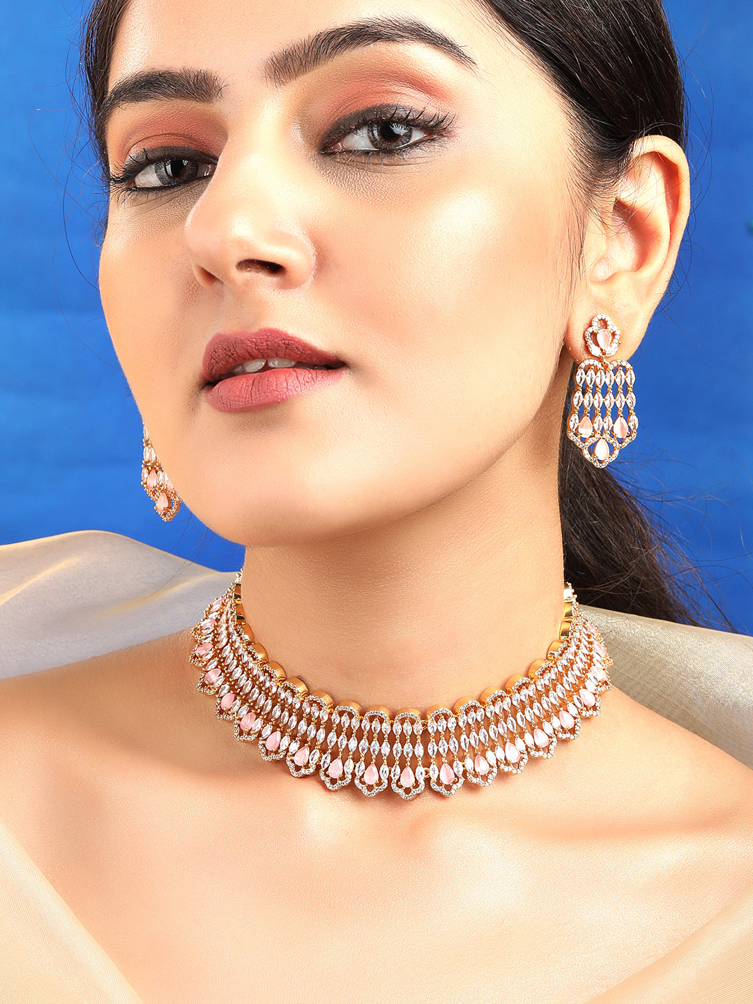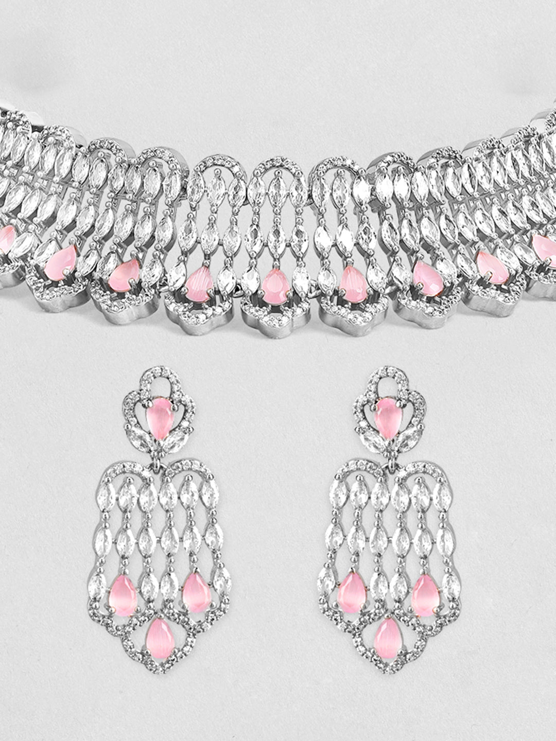Pink Teardrop American Diamond Zirconia Necklace Set