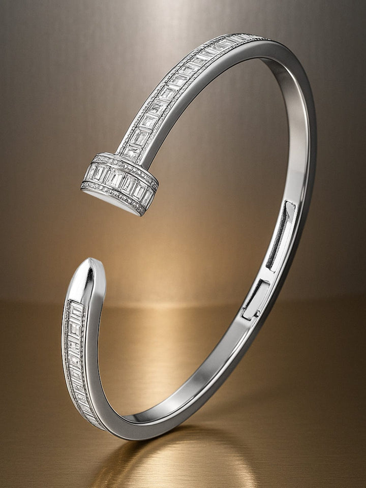 Rubans Rhodium-Plated Baguette Cubic Zirconia Openable Demi Fine Cuff Bracelet Bangles & Bracelet