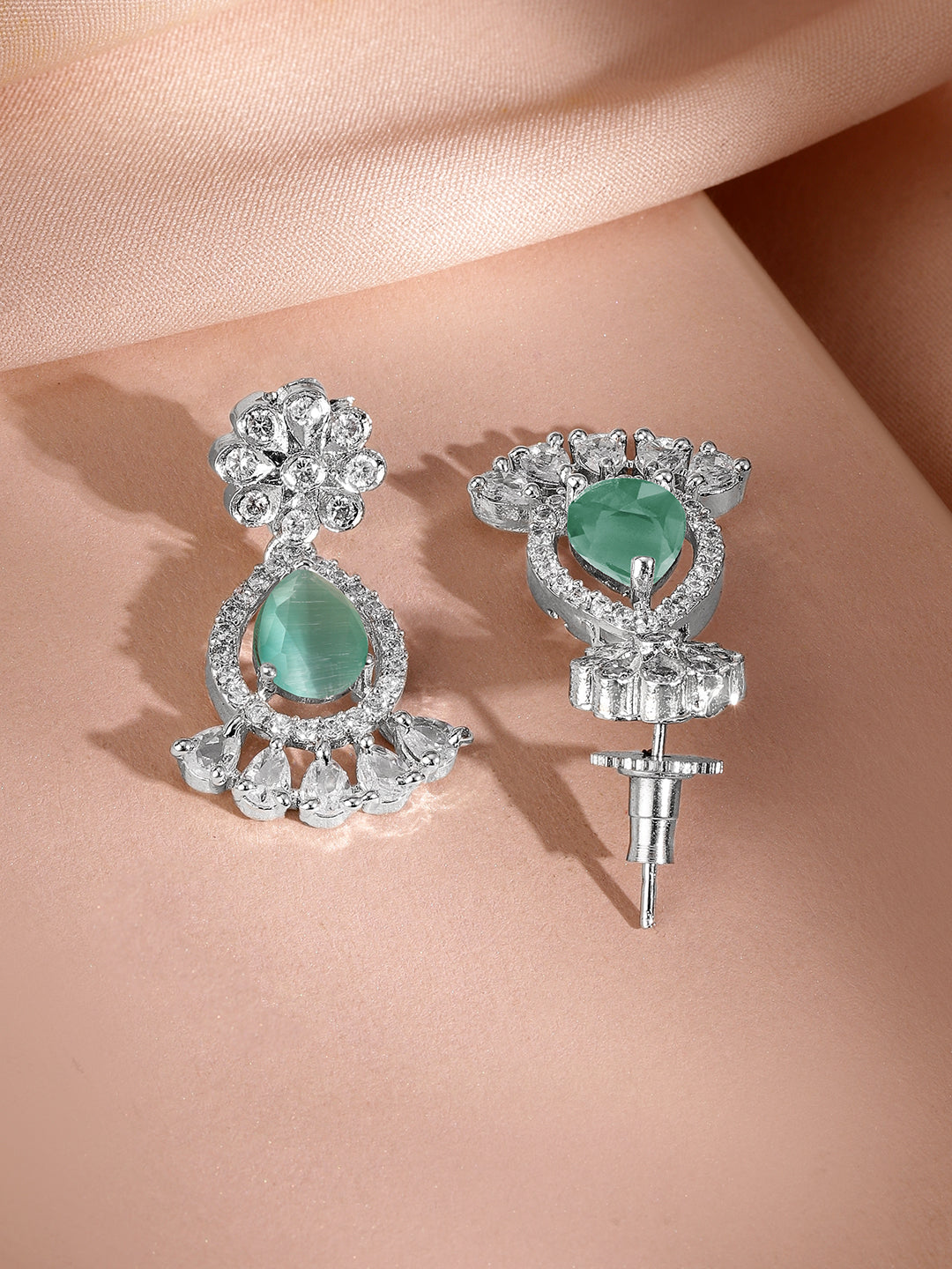 Rubans Rhodium-Plated Pastel Green AD & Cubic Zirconia Studded Necklace Set Jewellery Set