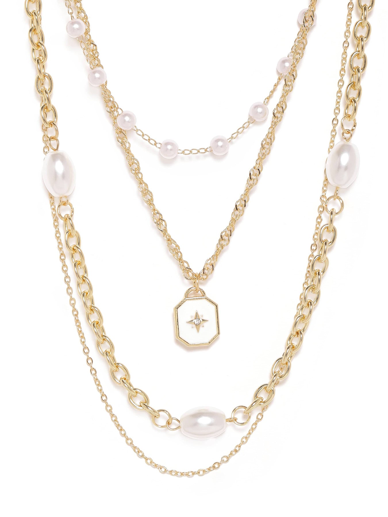 Elevate your style with Rubans 18K gold-plated multi-layered chain necklace, adorned with pearls and a star charm pendant. Perfect for adding elegance and sophistication to any look.