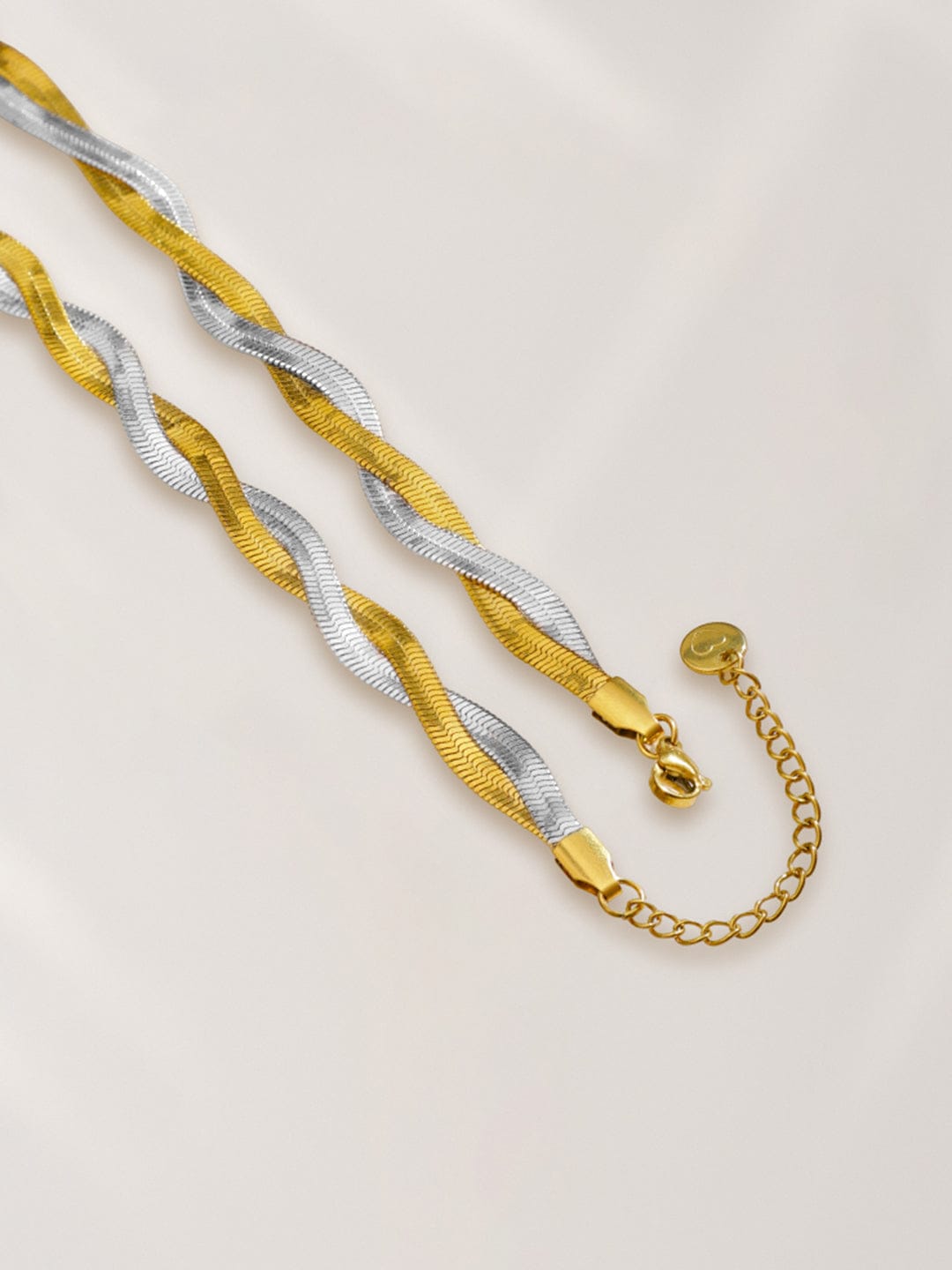 Share on WhatsappDual Toned Twisted Snake Chain Necklace
